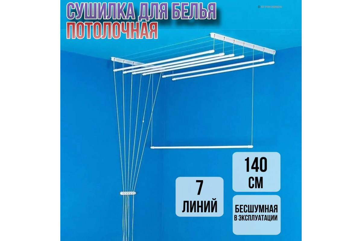 Сушилка для белья потолочная Лиана 140 см/7 перекладин белых