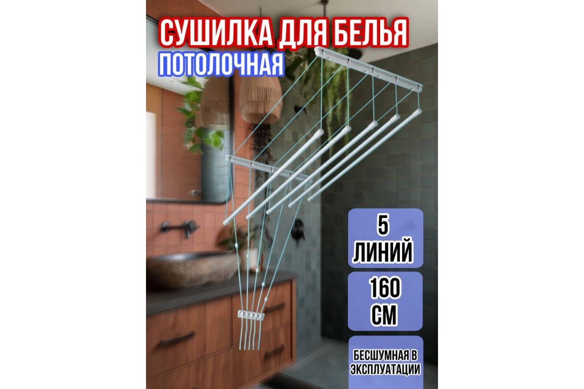 Сушилка для белья потолочная Лиана 160 см/5 перекладин серых