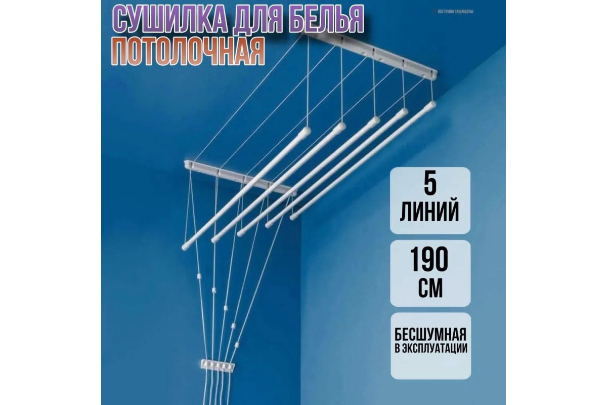 Сушка для белья «Лиана» обеспечит должный уход за вашими вещами. В комплект входят пять прочных металлических штанг, на которых можно разместить бельё, одежду и другие предметы. Потолочная сушка с прочными верёвками экономит пространство и обеспечивает комфорт.