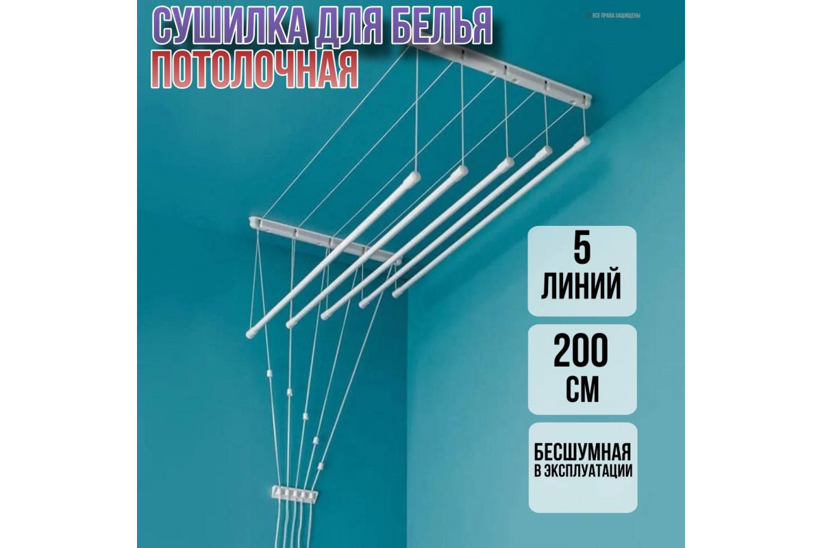 Сушка для белья «Лиана» обеспечит должный уход за вашими вещами. В комплект входят пять прочных металлических штанг, на которых можно разместить бельё, одежду и другие предметы. Потолочная сушка с прочными верёвками экономит пространство и обеспечивает комфорт.