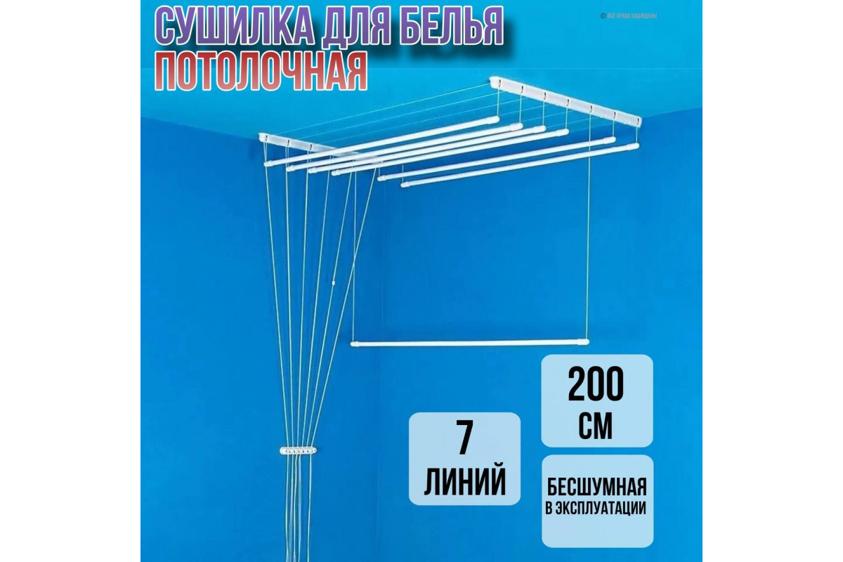 Сушилка для белья потолочная Лиана 200 см/7 перекладин белых