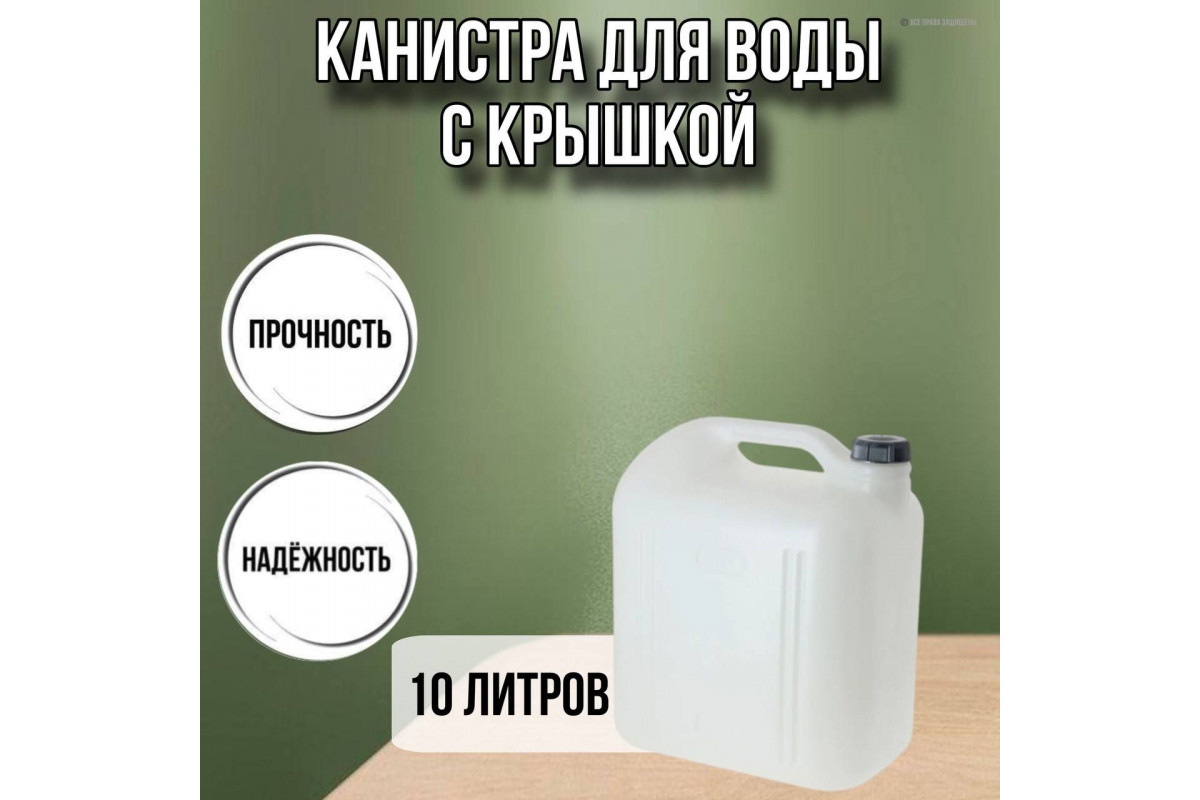 Канистра для воды пластиковая 10 литров бочка емкость с крышкой прямоугольная высокая гладкая С931бел