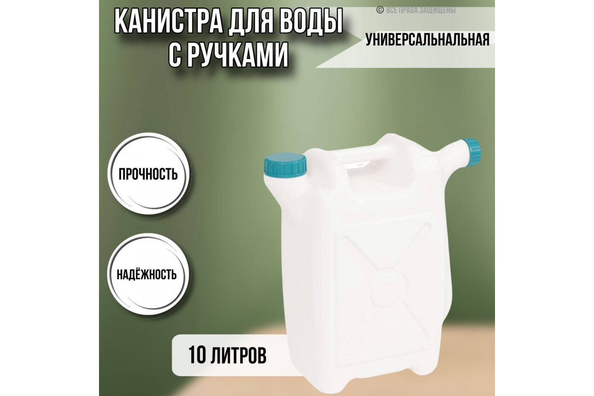 Канистра для воды пластиковая 10 литров емкость с ручками прямоугольная высокая ребристая слив НОСИК М049