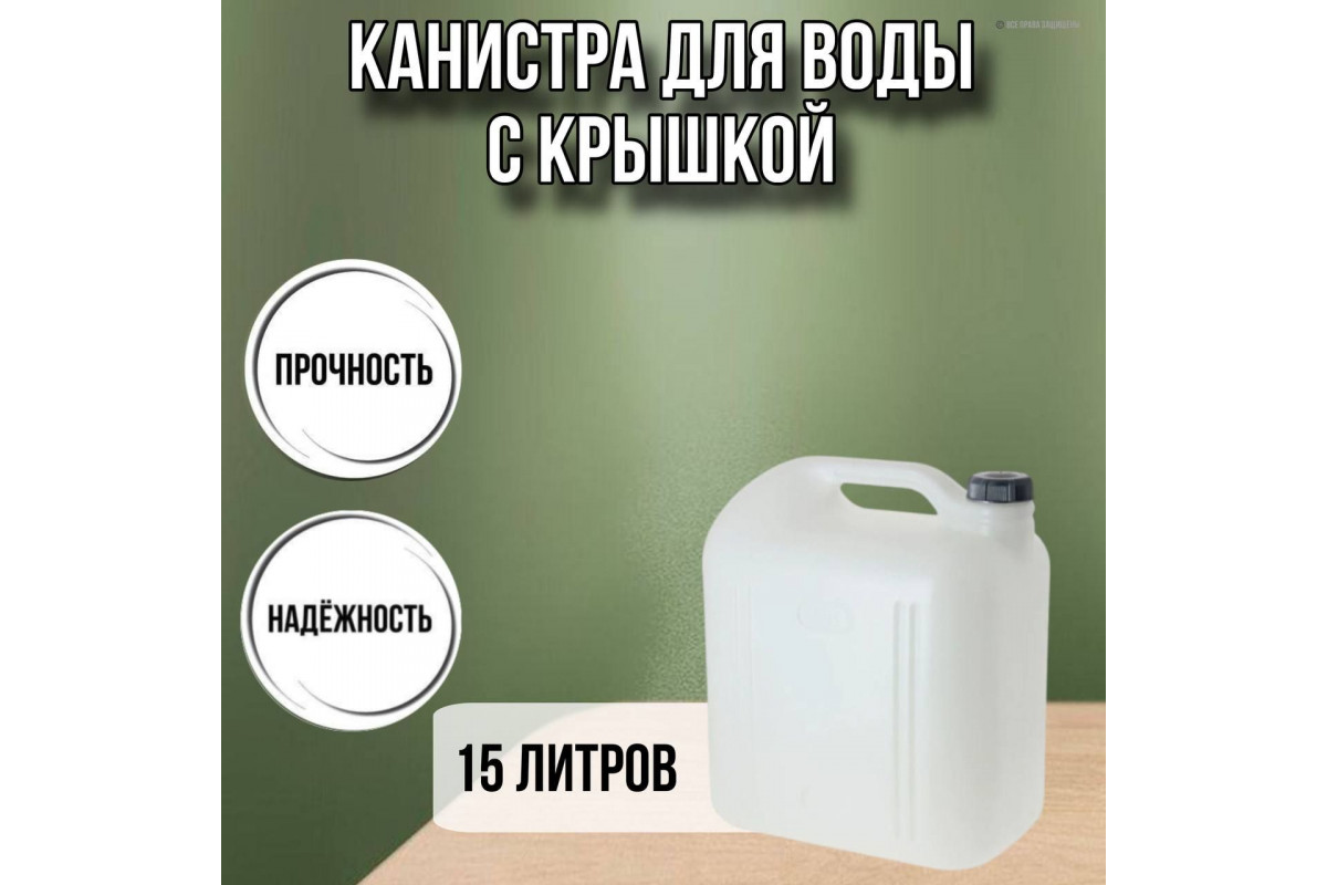 Канистра для воды пластиковая 15 литров бочка емкость с крышкой прямоугольная высокая гладкая С932