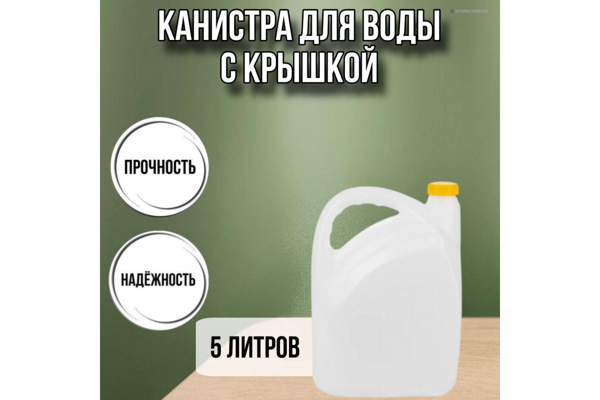 Канистра для воды пластиковая 5 литров бочка емкость с крышкой прямоугольная высокая гладкая 10070508