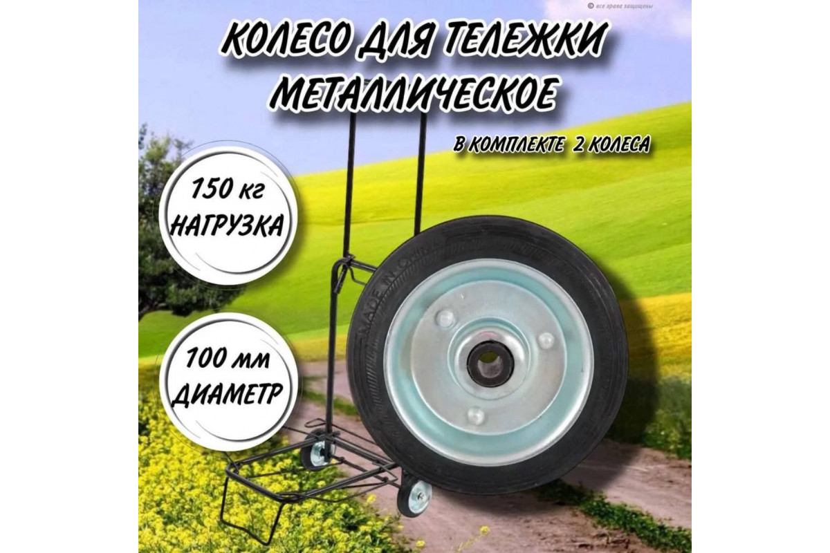 Колесо металлическое для тележки 100 мм, втулка ступица 8 мм/в комплекте 2 колеса
