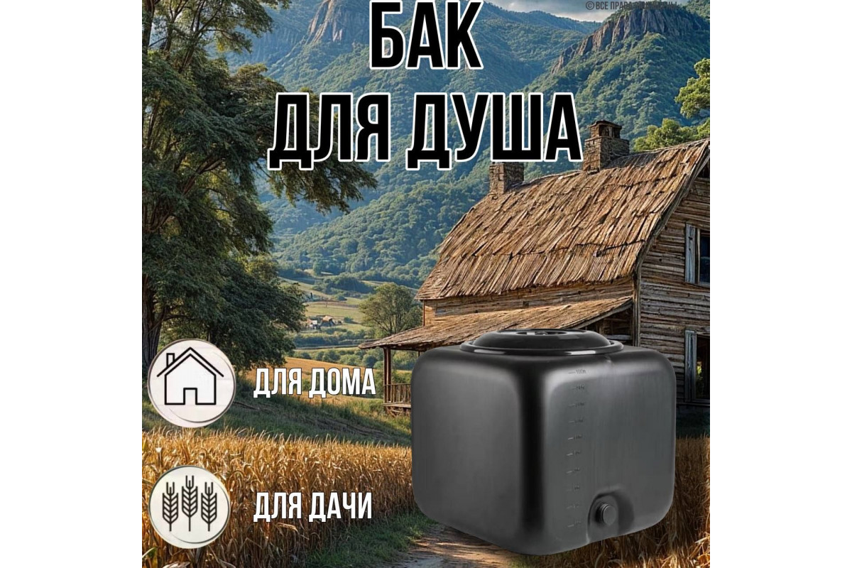Бак для душа 100 литров квадратный (черный) / бак для хранения воды и полива