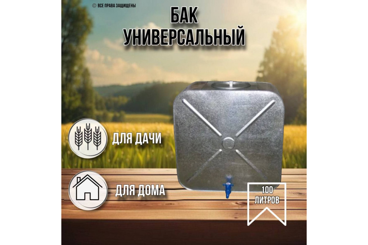 Бак для воды 100 литров с краном оцинкованный / бак плоский с краном