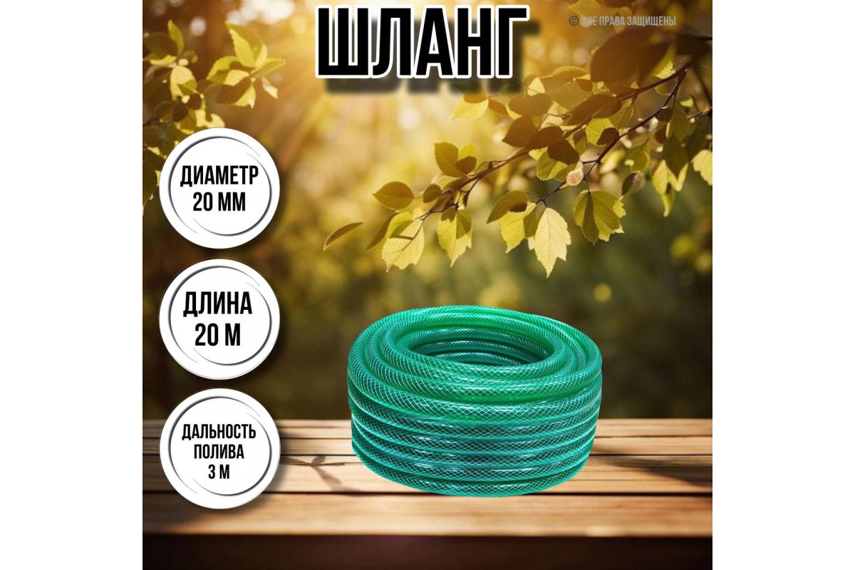 Шланг для воды / шланг поливочный садовый ПВХ армированный диаметр 3 / 4, длина 20 м толщина стенки 3 мм силикон