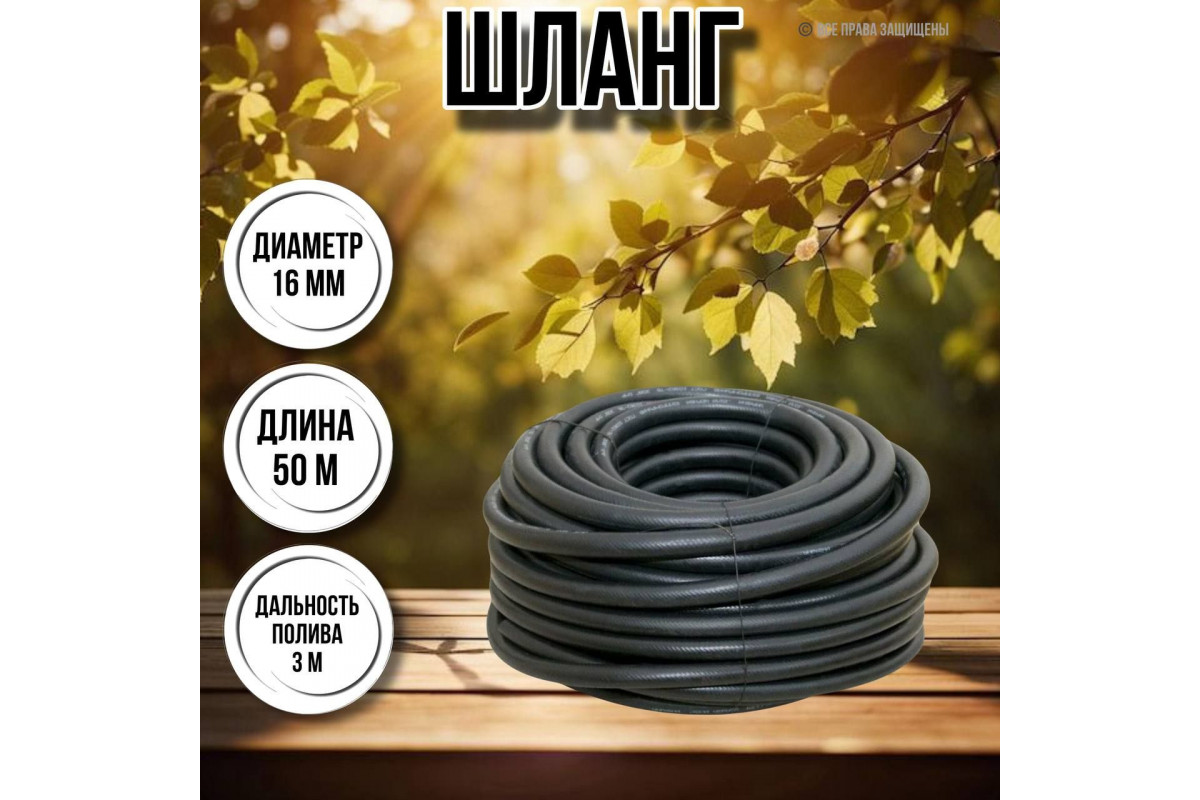 Шланг для воды / шланг поливочный садовый резиновый, армированный длина 50 м, диаметр 16 мм толщина стенок 4 мм