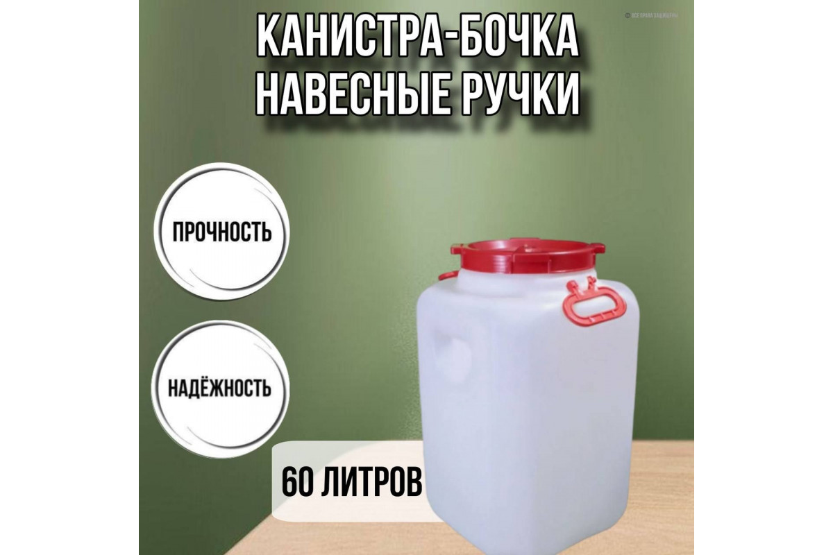 Канистра для воды пластиковая 60 литров емкость с навесными и врезными ручками квадратная высокая М577