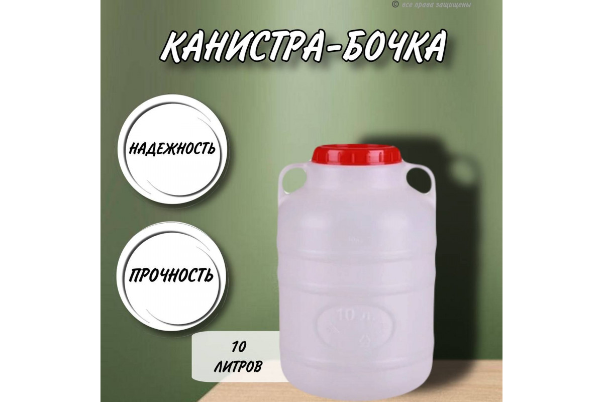 Канистра для воды 10 литров пластмассовая с ручками пищевой пластик бочка М043