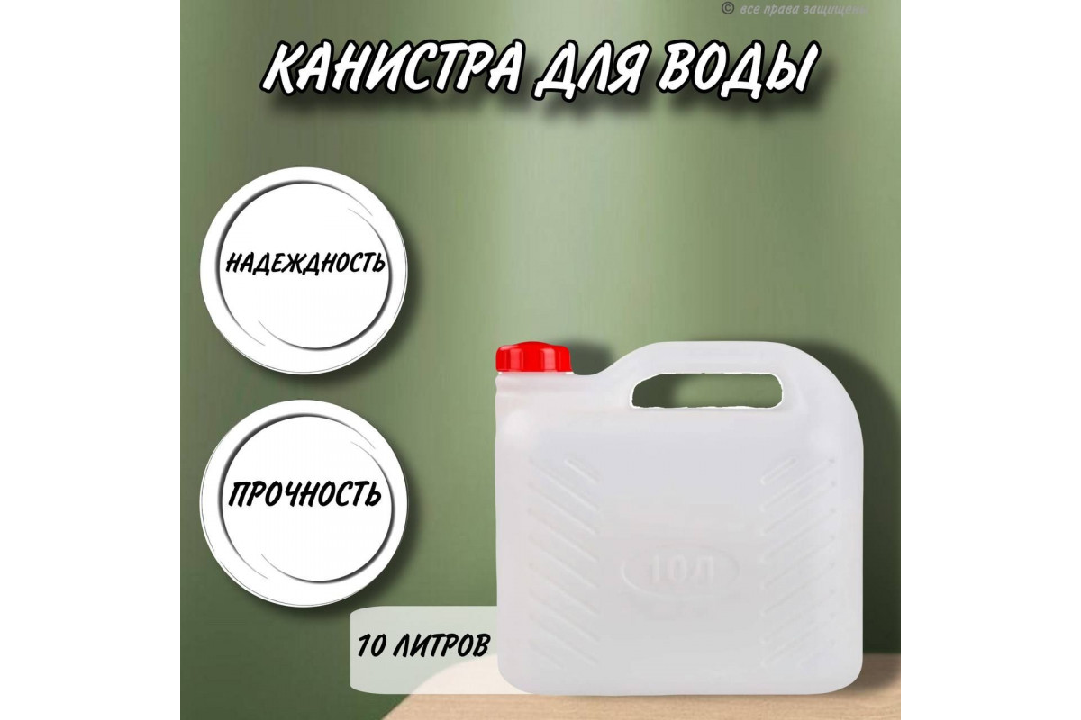 Канистра для воды 10 литров пластмассовая с ручкой пищевой пластик прямоугольная гладкая М6823