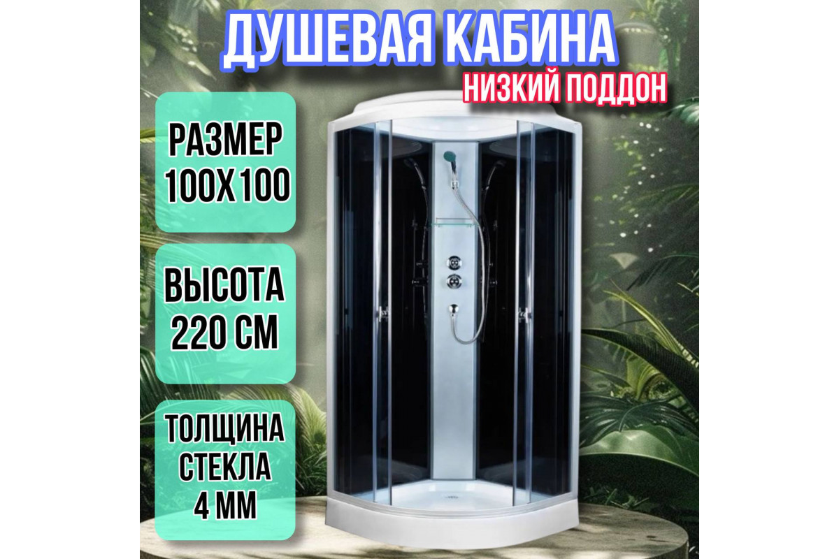 Душевая кабина 100х100 низкий поддон высота 220 черная 4023AQD