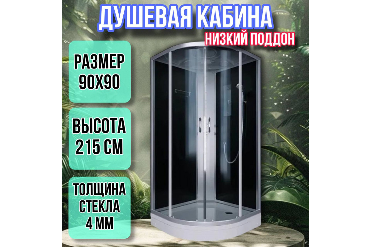Душевая кабина 90х90 низкий поддон высота 215 черная ER3509PС4