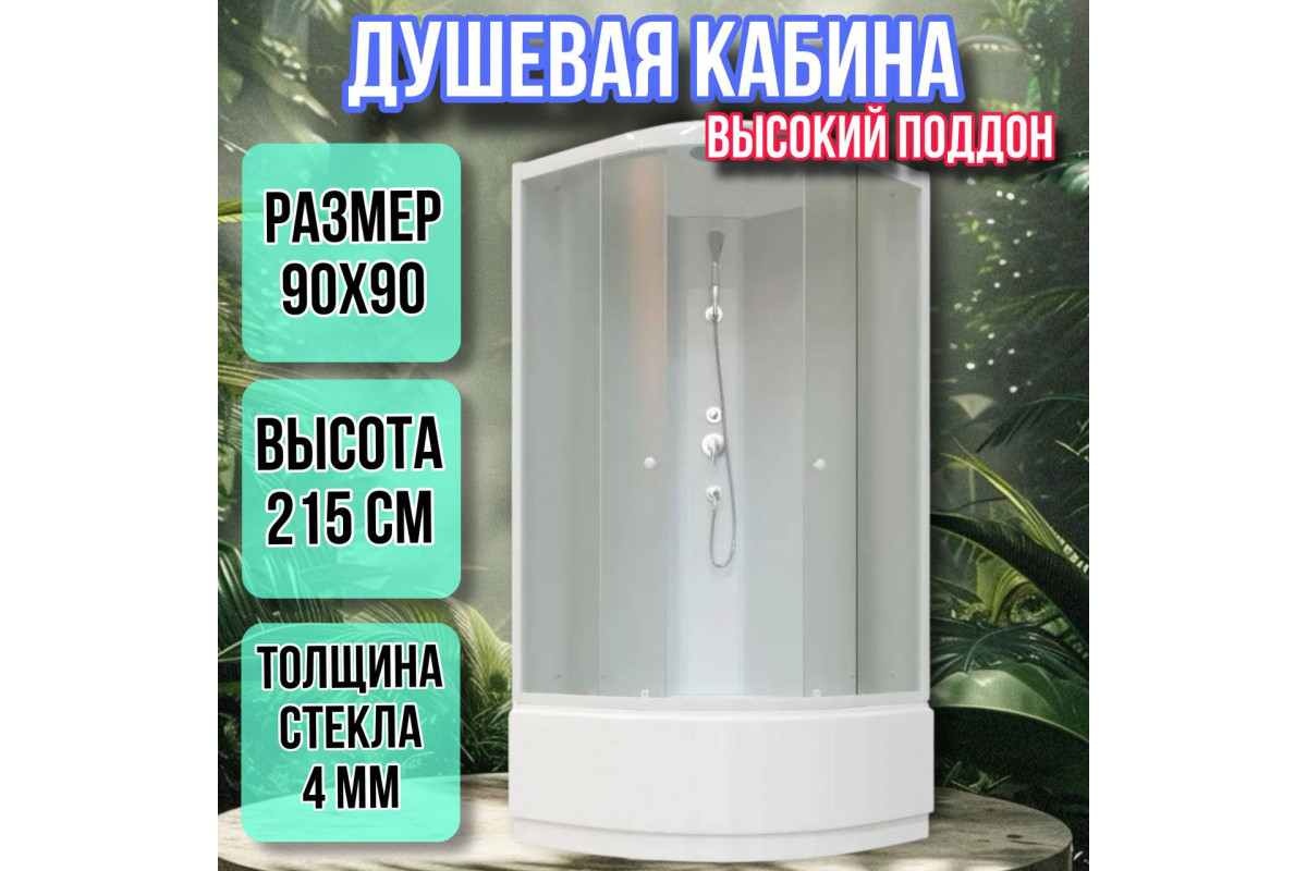 Душевая кабина 90х90 высокий поддон высота 215 матовая EB921