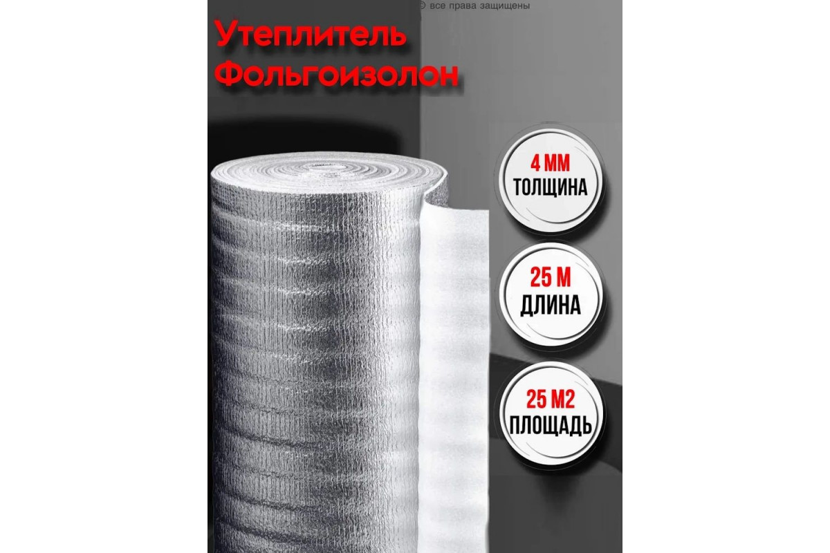 Фольгированный утеплитель фольгоизолон 4 мм, 1 м х 25 м теплоотражающая подложка