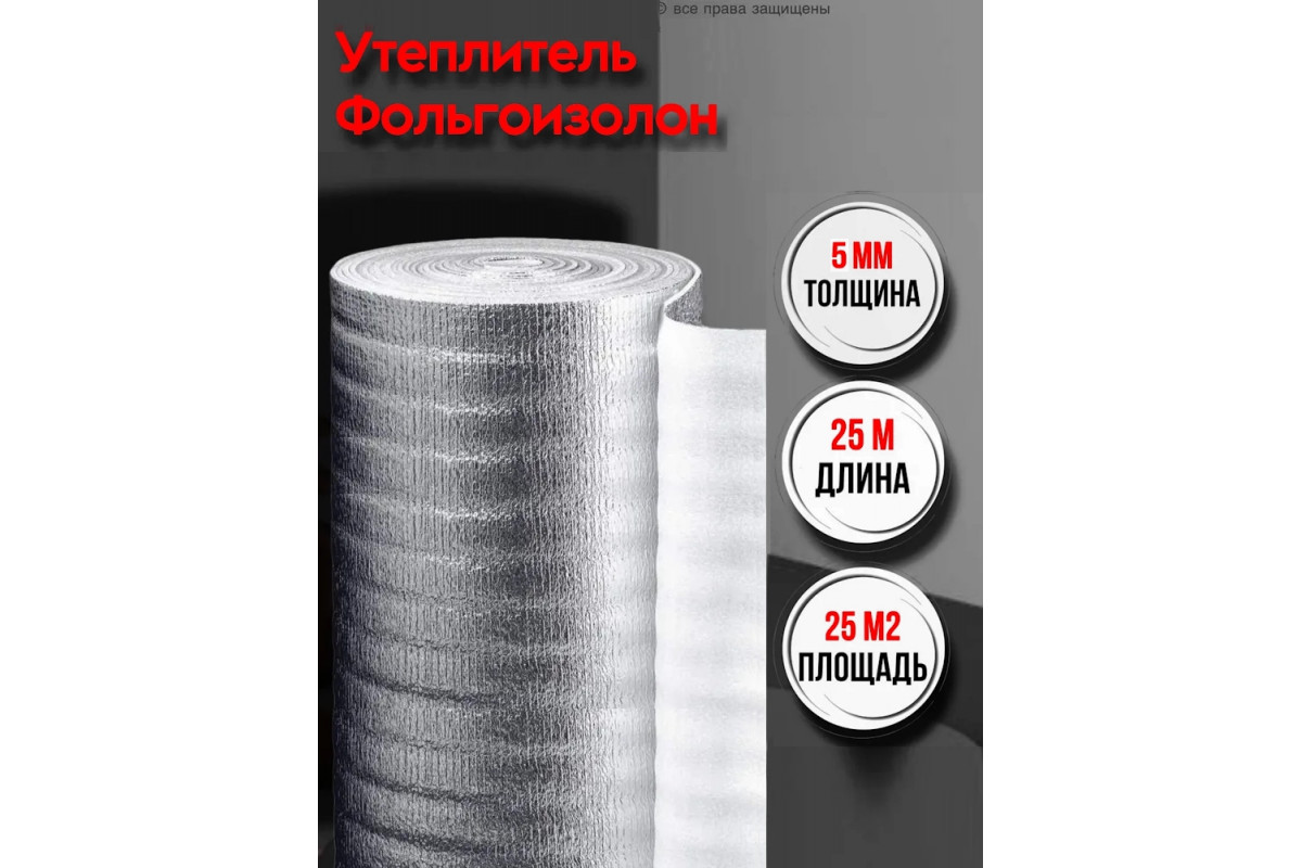 Фольгированный утеплитель фольгоизолон 5 мм, 1м х 25м теплоотражающая подложка