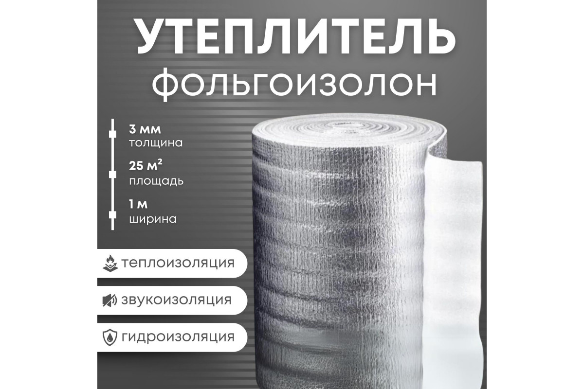 Утеплитель фольгированный 3 мм, 1м х 25м фольгоизолон