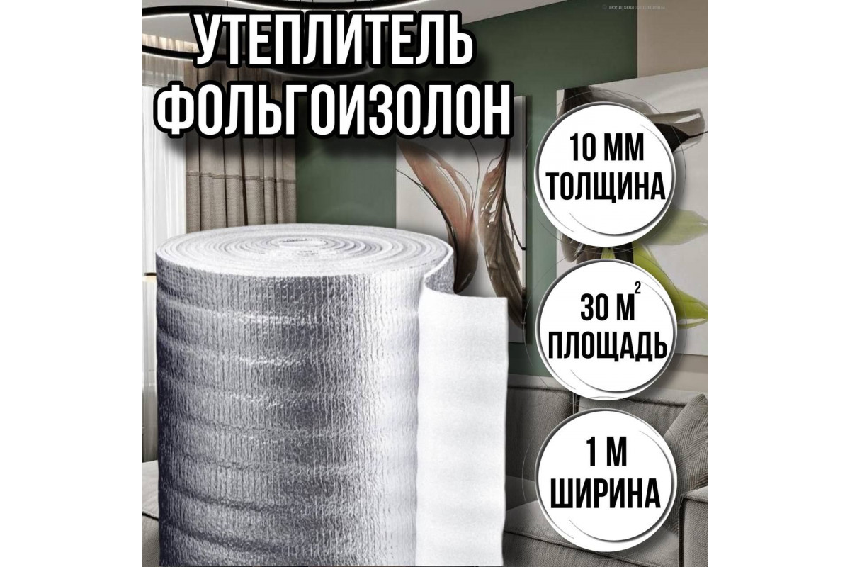 Утеплитель фольгированный 10 мм х 1м х 30м фольгоизолон