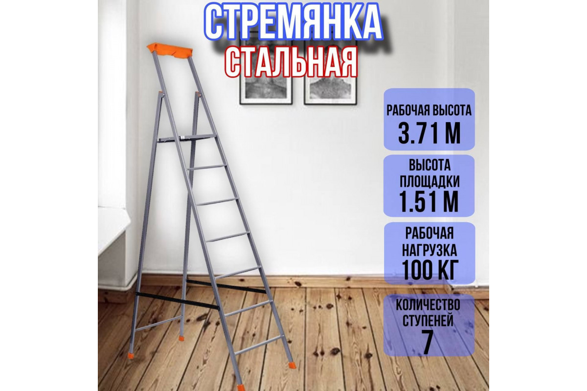 Стремянка стальная 7 ступеней профильная 30х15 СП7
