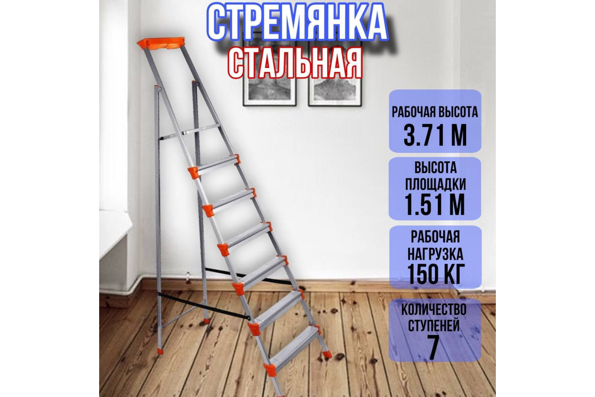 Стремянка стальная 7 широких металлических ступеней СМ7