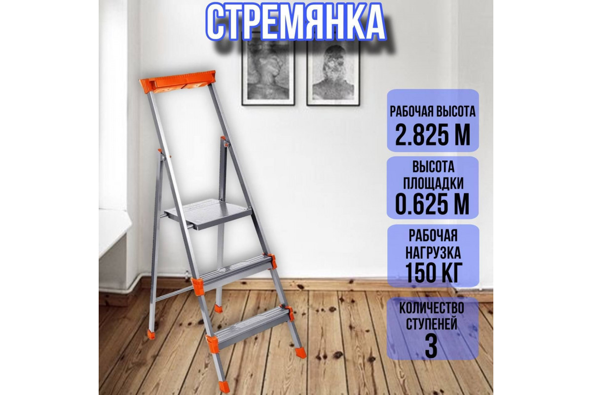 Стремянка стальная 3 широкие металлические ступени СМ3