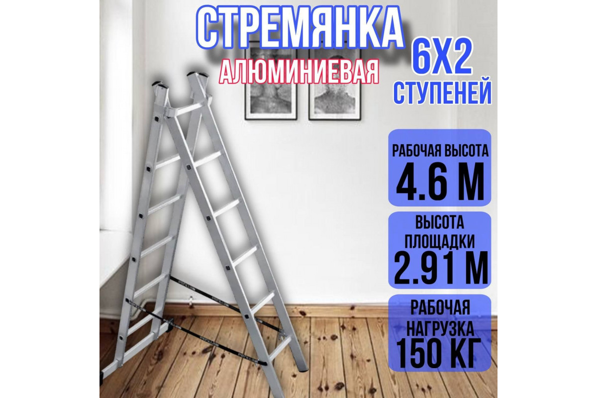 Лестница приставная стремянка 2 секции по 6 ступеней высота 1,78 м / 2,91 м
