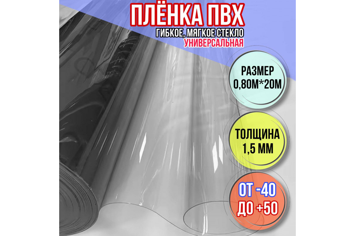 Мягкие окна для веранды Пленка ПВХ прозрачная, толщина 1,5 мм, размер 0,80м*20м